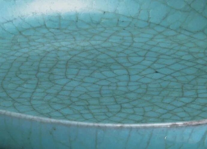 汝瓷的开片分为有规则和不规则两种,规则的是冰裂片,圆形的冰裂片叫雪花片,半圆形的叫鱼鳞片或蟹脚纹,而不规则的大部分都是细碎片,大开片很少,几乎没有见过!