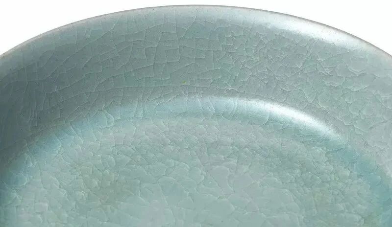 汝瓷的开片分为有规则和不规则两种,规则的是冰裂片,圆形的冰裂片叫雪花片,半圆形的叫鱼鳞片或蟹脚纹,而不规则的大部分都是细碎片,大开片很少,几乎没有见过!